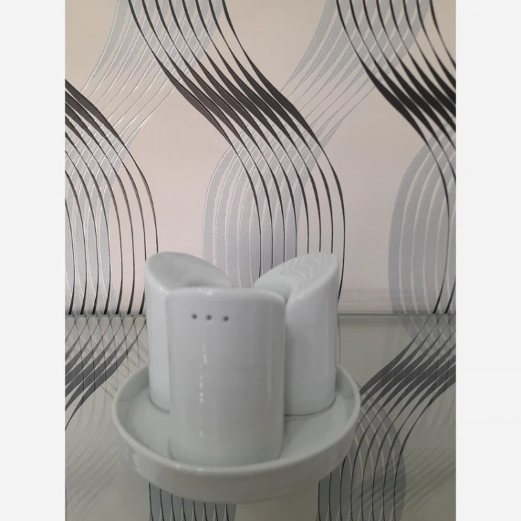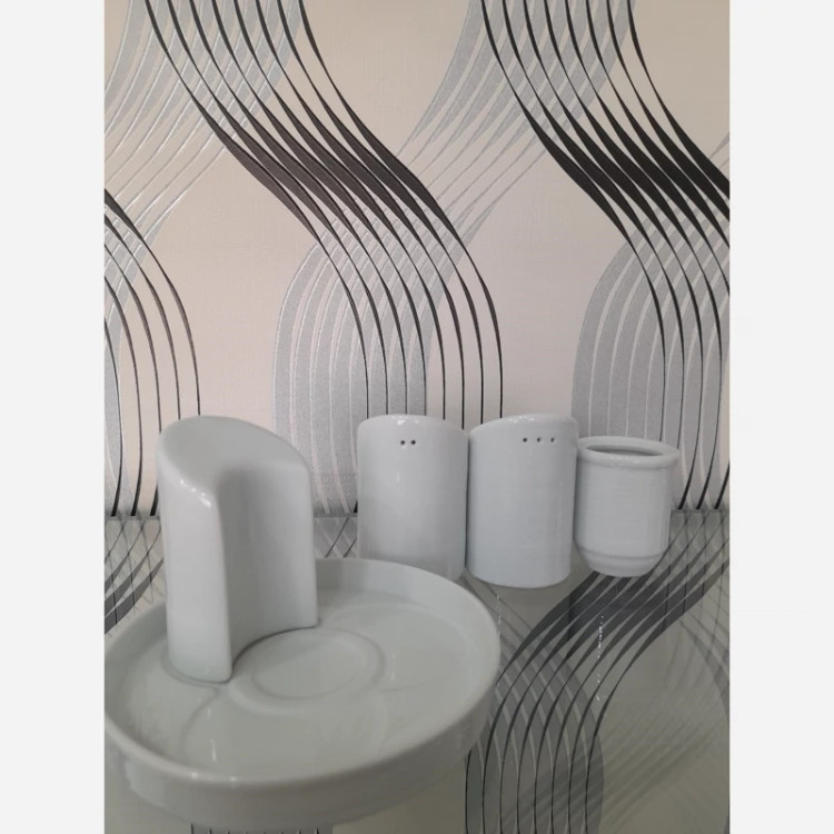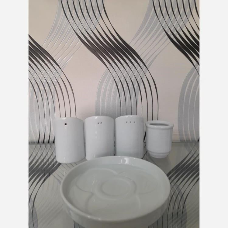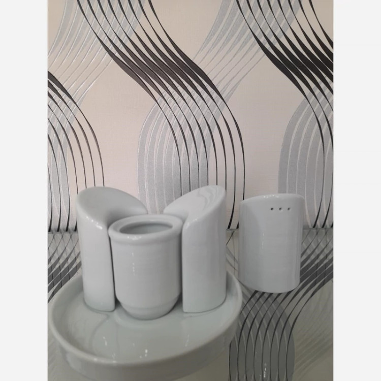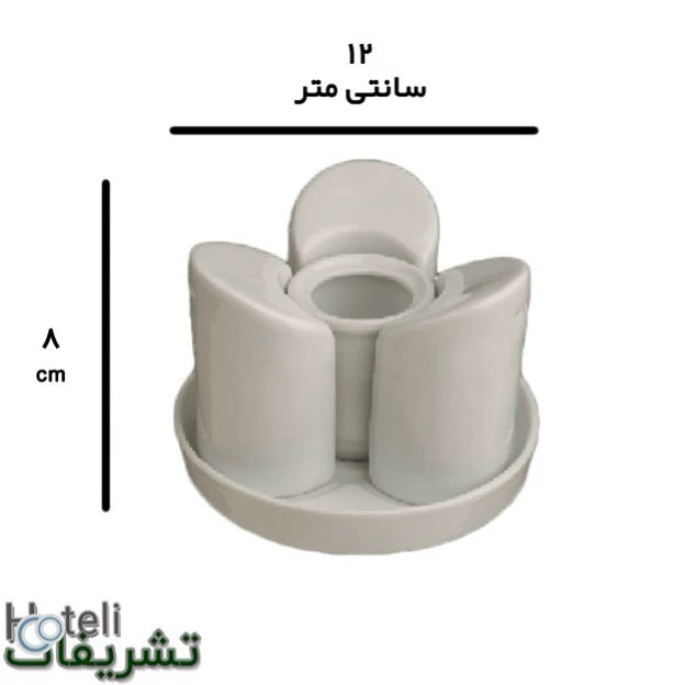 12عدد ست جهار پارچه نمکپاش چینی تقدیس سری رلیف هتلی یا 1 کارتن ست نمکپاش، فلفلپاش، سماقپاش، جاخلالی و سطح کفی چینی، چینی تقدیس سری هتلی آرایه سفید، دارای جنس بدنه مقاوم است.