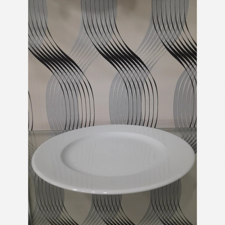 24عدد پلوخوری چینی تقدیس سایز 26 سانت چینی تقدیس سری رلیف هتلی یا 1 کارتن بشقاب تخت بزرگ چینی تقدیس سری هتلی، آرایه سفید، دارای جنس بدنه مقاوم است.