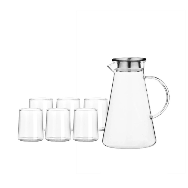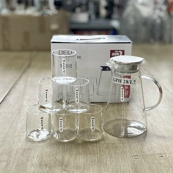 پارچ و لیوان پیرکس مدل ساده برند Deli بسته 8 عددی سفید