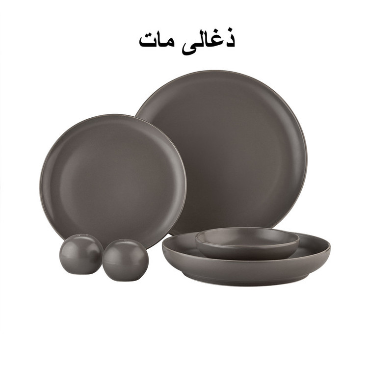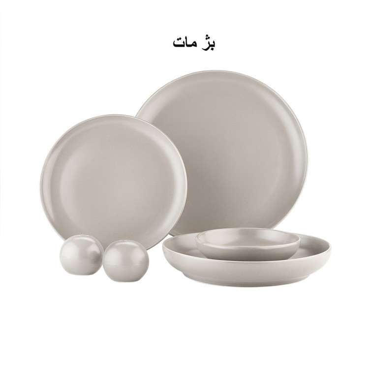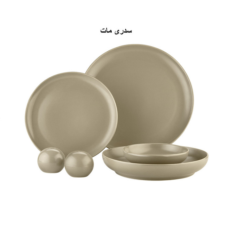 اقلام سرویس: بشقاب غذاخوری , بشقاب خورشخوری , پیشدستی , پیاله , نمکپاش و فلفلپاش