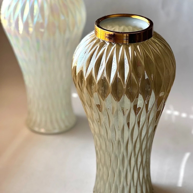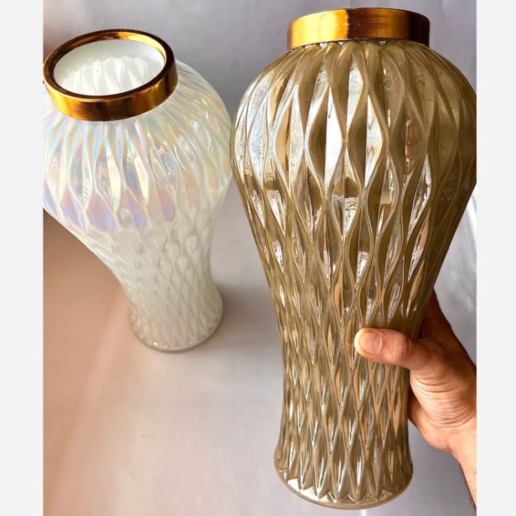 گلدان شیشه رنگی ارتفاع 35 مدل لوزی فروش تکی(پس کرایه)