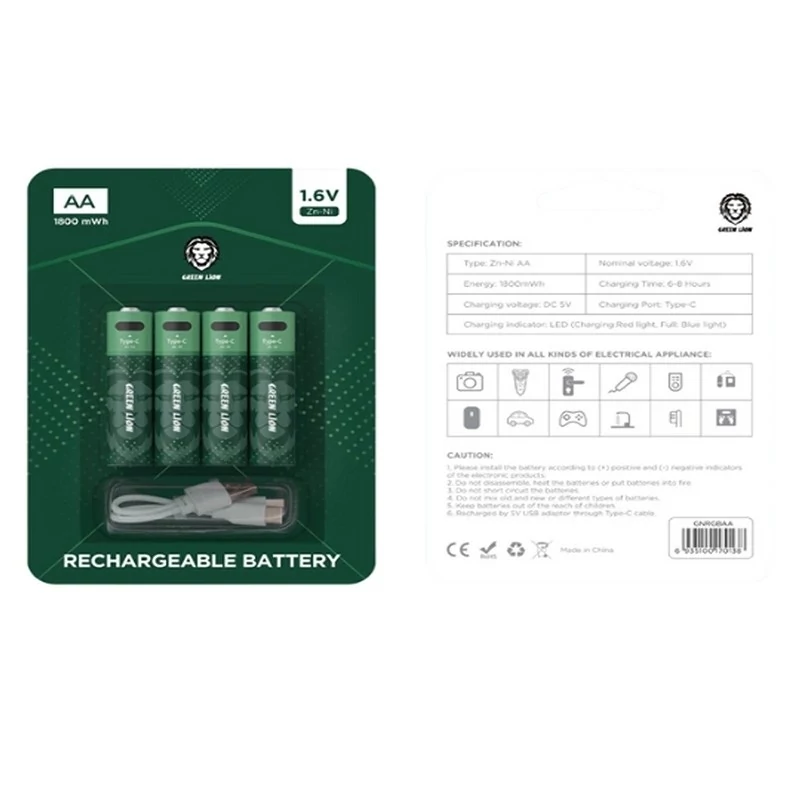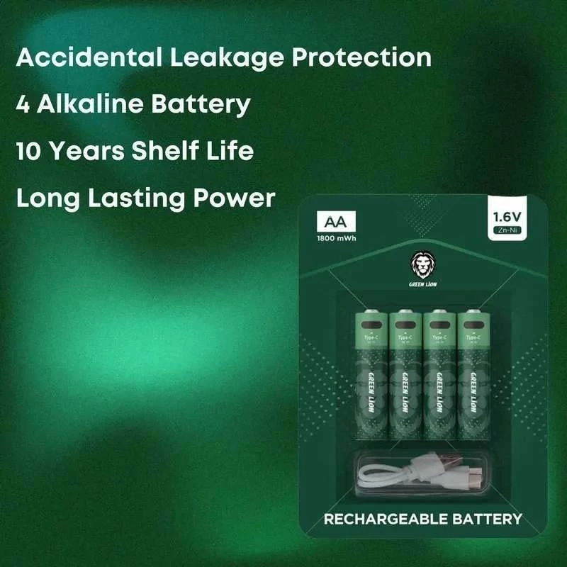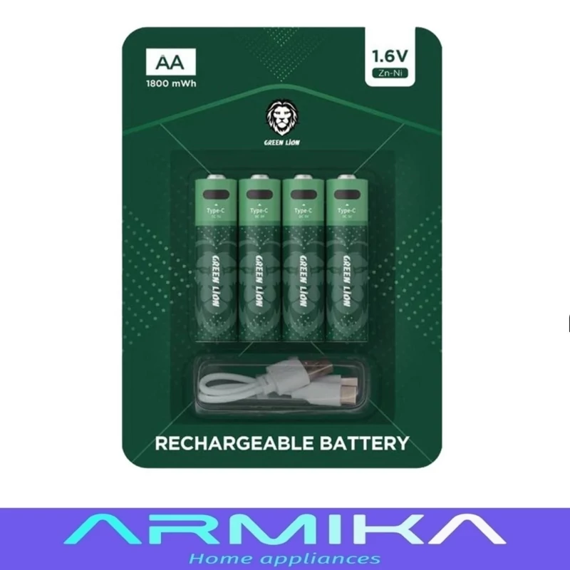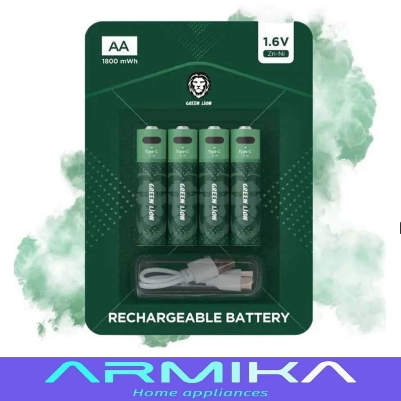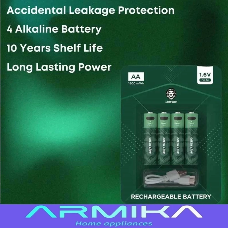 درون بسته بندی این محصول 4 عدد باتری تایپ Zn-Ni AA با انرژی 1800mWh قرار دارد که از توانایی شارژ مجدد بهره میبرند و میتوان با کابل Type-c موجود درون بسته بندی آنها را شارژ کرد.