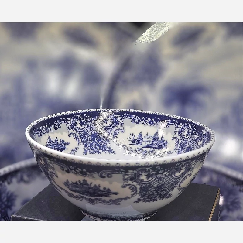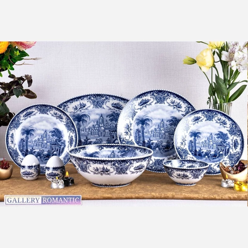 سرویس غذاخوری چینی باواریا طرح آکسفورد آبی 6 نفره-28 پارچه(پس کرایه)