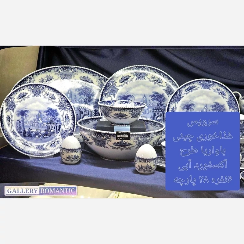 ⭕️سرویس غذاخوری چینی باواریا طرح آکسفورد آبی 6 نفره-28 پارچه(پس کرایه)آ