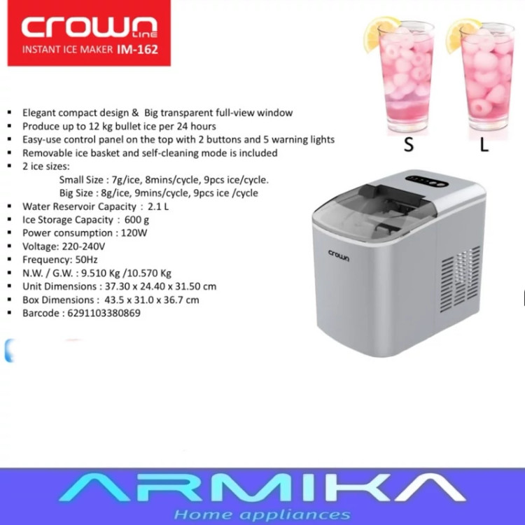 این دستگاه دارای یک سیستم کنترل خودکار و پنل لمسی نرم برای کنترل میزان سرعت ساخت یخ شما است. یخ ساز در 2 اندازه یخ ایجاد می کند تا بتوانید مکعب های عالی برای نوشیدنی های خنک خود درست کنید. نیازی به لوله کشی یا زهکشی نیست، فقط آن را وصل کنید و بروید. کمپرسور بسیار کارآمد بدون CFC است. این دستگاه یخ ساز ممکن است یکی از کوچکترین دستگاه های موجود در بازار باشد، اما اجازه ندهید اندازه آن شما را فریب دهد. شما می توانید ظرف 10 دقیقه یخ را آماده سرو کنید و خروجی آن می تواند تنها در 24 ساعت به 12 کیلوگرم برسد. بررسی پیشرفت یخ خود از طریق پنجره دستی آسان است.