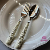 ست قاشق و چنگال استیل دسته سرامیکی هپی فامیلی کد 001 (پس کرایه)