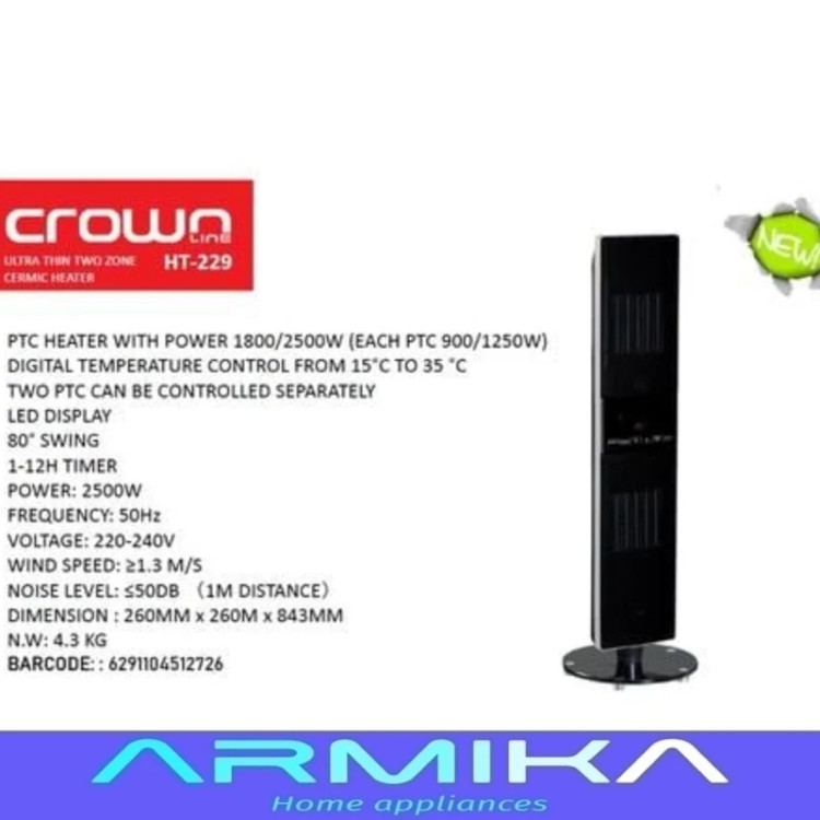 بخاری سرامیکی هوشمند و دیجیتال کراون CROWN مدل HT-229
