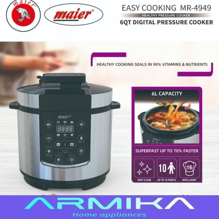 یکی از ویژگیهای برجسته زودپز و پلوپز MR-4949، سیستم ایمنی پیشرفته آن است که شامل قفل ایمنی درب، سیستم کنترل فشار و محافظت در برابر حرارت میشود. این ویژگیها به شما اطمینان میدهند که در حین پخت و پز، هیچ گونه خطری شما را تهدید نمیکند. همچنین، صفحه نمایش دیجیتال و دکمههای لمسی این دستگاه، استفاده از آن را بسیار آسان و راحت کرده است. با قابلیتهای متنوعی که این زودپز و پلوپز ارائه میدهد، شما میتوانید به راحتی به پخت انواع غذاهای خوشمزه، از جمله خورشتها، برنج و حتی دسرها بپردازید و از طعم و کیفیت بالای غذاهای خانگی لذت ببرید