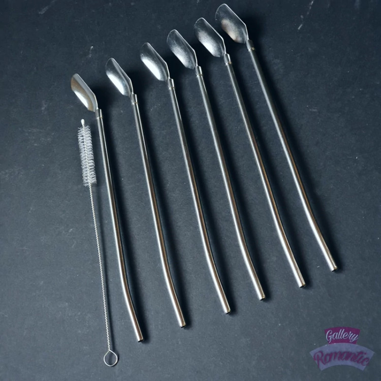 قاشق شربت نی دار استیل نگیر فالکون 6 عددی به همراه فرچه(پس کرایه)