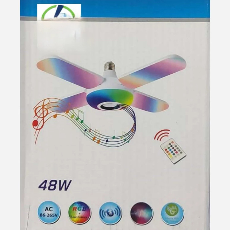 لامپ پنکه ای رقص نور دار موزیکالی 48 وات بلوتوثی وایرلس RGB چندکاره ریموت دار اسپیکردار