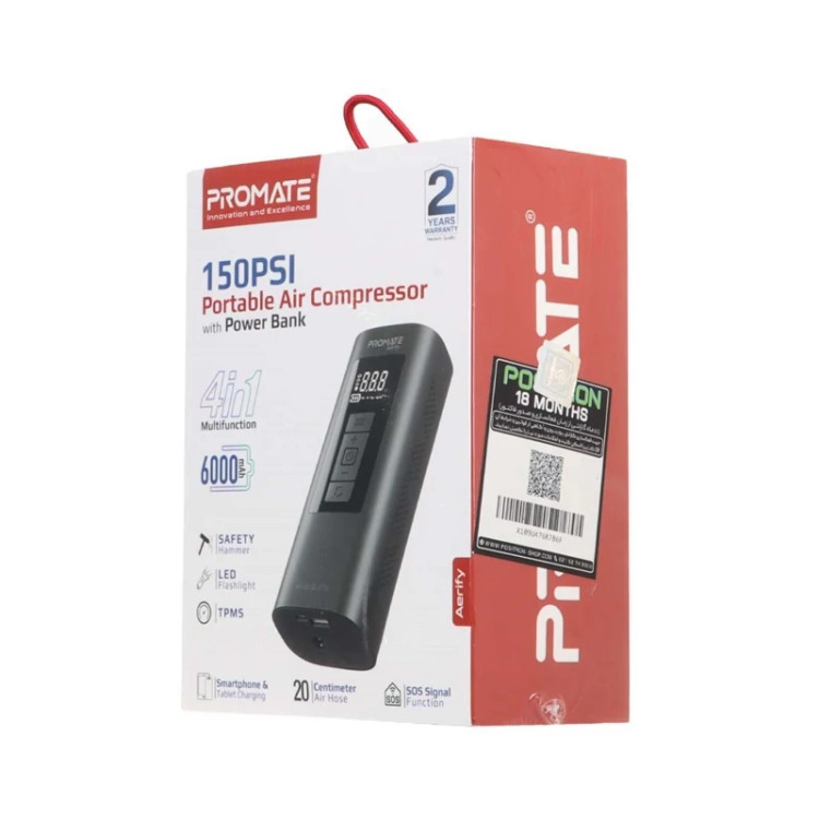 محصولی که به آن اشاره کردید، **پاوربانک Promate 5W 6000mAh مدل Aerify - مشکی**، یک پاوربانک با طراحی خاص و قابلیتهای جالب است. این پاوربانک علاوه بر عملکرد معمول به عنوان منبع تغذیه قابل حمل، دارای یک **کمپرسور هوا** نیز هست که آن را به یک گجت همهکاره تبدیل میکند. در ادامه به ویژگیها و مشخصات این محصول میپردازیم: