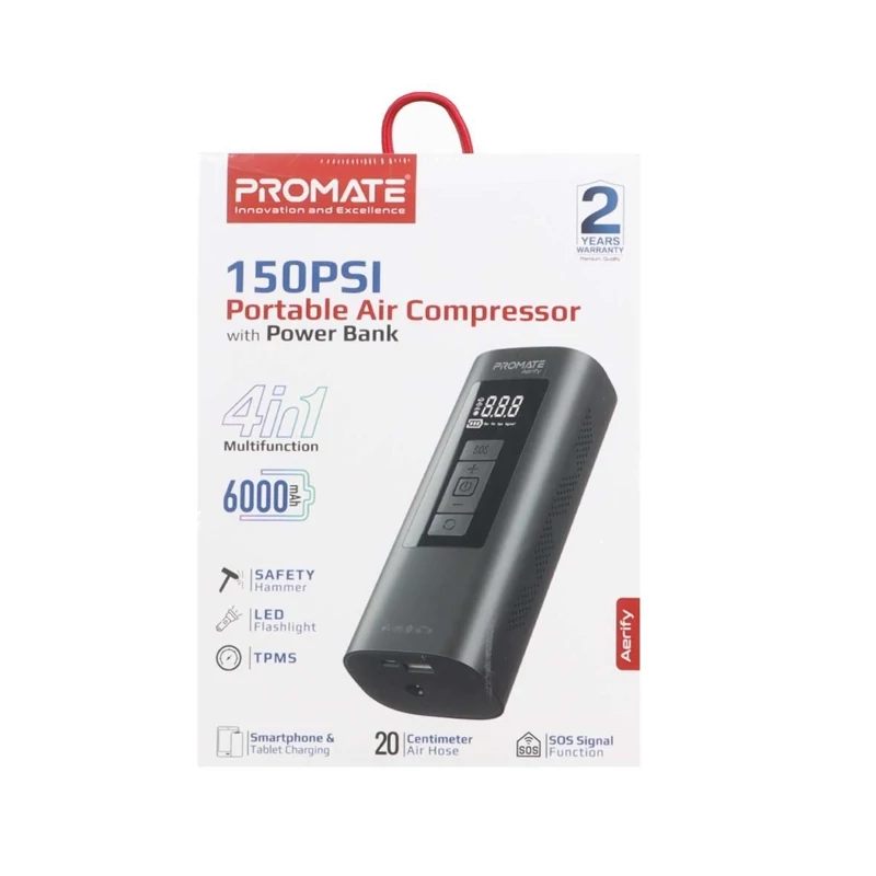 محصولی که به آن اشاره کردید، **پاوربانک Promate 5W 6000mAh مدل Aerify - مشکی**، یک پاوربانک با طراحی خاص و قابلیتهای جالب است. این پاوربانک علاوه بر عملکرد معمول به عنوان منبع تغذیه قابل حمل، دارای یک **کمپرسور هوا** نیز هست که آن را به یک گجت همهکاره تبدیل میکند. در ادامه به ویژگیها و مشخصات این محصول میپردازیم: