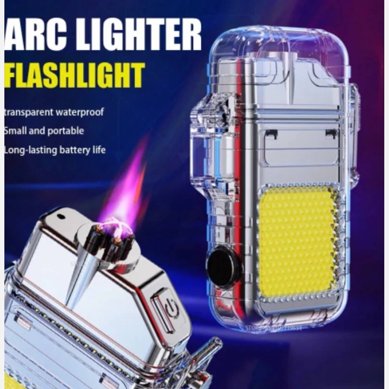 فندک شارژی چراغ دار چندکاره ضدآب و ضدباد المنتی پلاسمایی پروژکتوردار تاکتیکال چراغ قوه دار