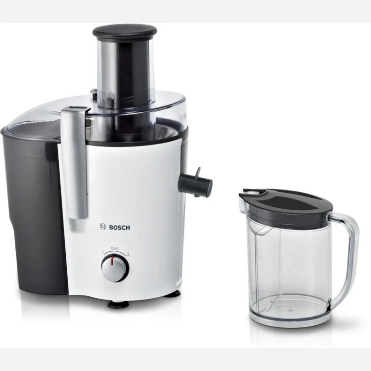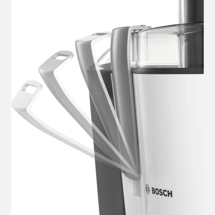 آبمیوهگیری بوش مدل «MES25A0» یکی از آبمیوهگیریهای تککاره موجود در بازار است. این دستگاه از بدنهای از جنس پلاستیک بادوام ساخته شده و استحکام خوبی دربرابر ضربه دارد. قسمت ورودی میوهها در بخش بالایی دستگاه واقع شده است که با قطر زیادی که دارد، میتواند بهآسانی قطعات بزرگ میوه را از خود عبور دهد. این ویژگی کار با دستگاه را آسانتر کرده و به آن سرعت بخشیده است. مخزن آبمیوهگیری در این محصول بوش مندرج بوده و 1.25 لیتر ظرفیت دارد.