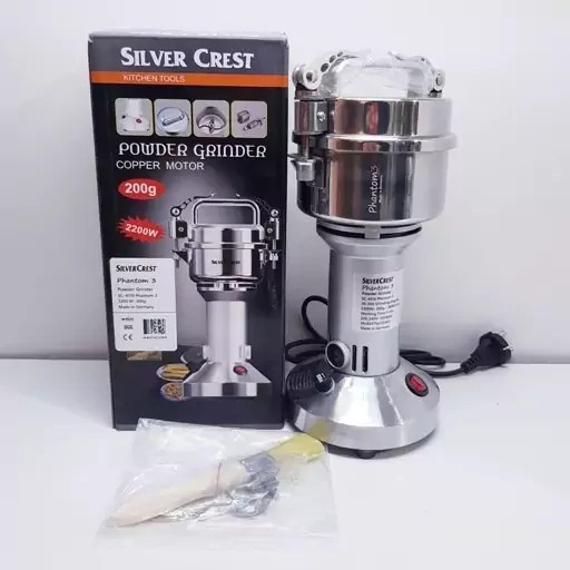 آسیاب صنعتی سیلورکرست اصلی جرمنی 200 گرمی حک شده 6 تیغه 2200 وات دارای تیغه و ذغال اضافه مدل PHANTOM 3