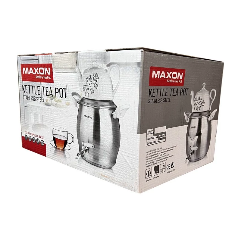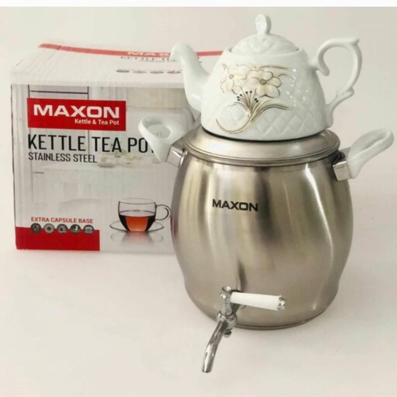 کتری قوری مکسون کف چدن، کتری استیل 6 لیتری و قوری چینی مدل 6l کتری طرح صاف
