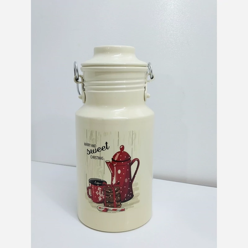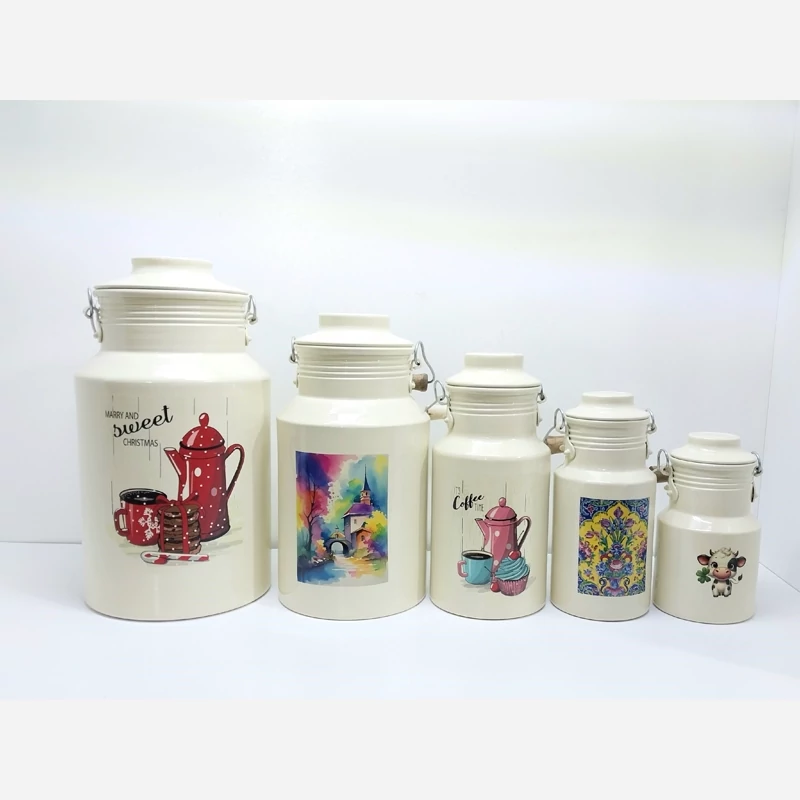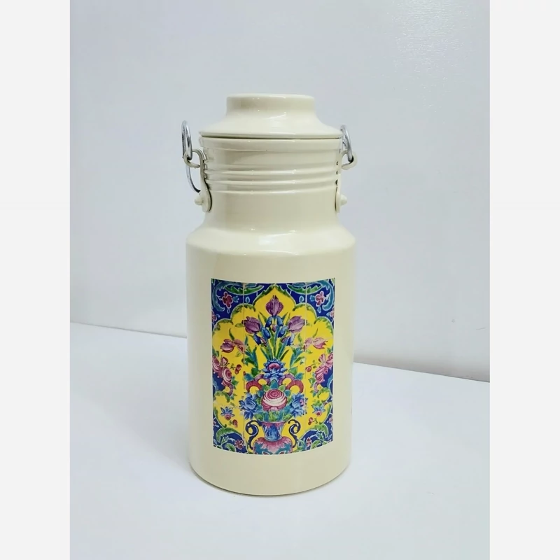 دبه روغن سطل شیر روحی 1 لیتری - بانکه - ظرف روغن یکتا هوم رنگ کوره و دسته چوبی مدل A010
