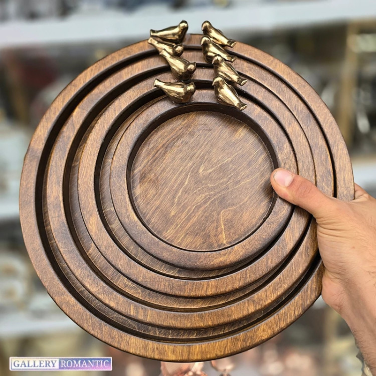 ⭕️سینی چوبی 4 تایی گنجشکی گلدکیش کد 5205(پس کرایه)