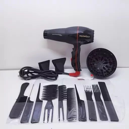 سشوار پرومکس گلد اصلی مدل LUXE AIR 7 حرفهای، همراه با 10 عدد شانه، 2 سری