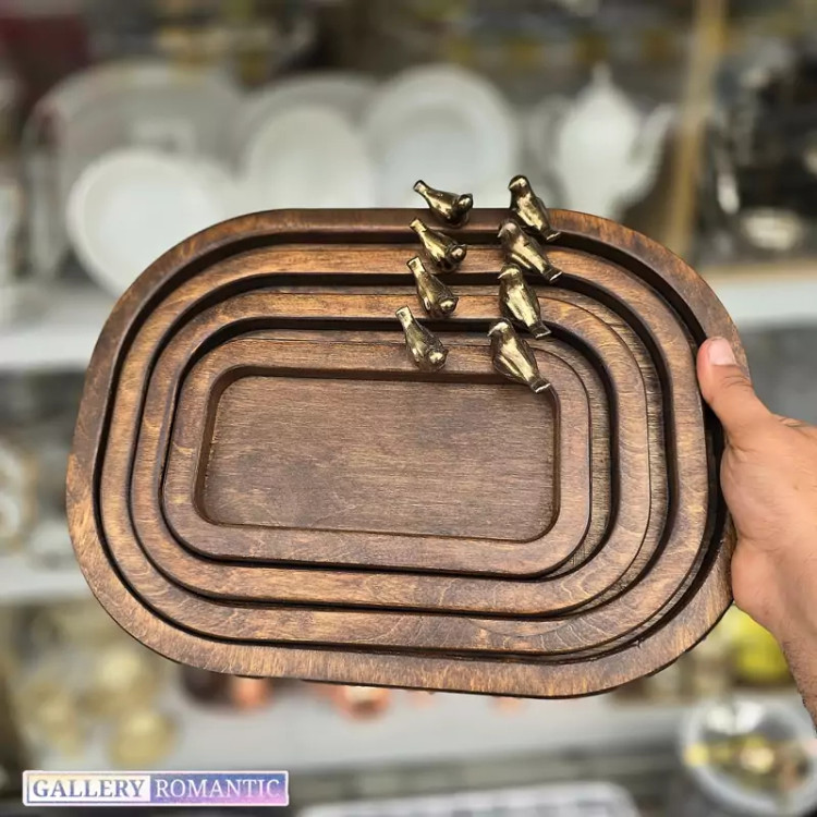 سینی چوبی 4 تایی گنجشکی گلدکیش کد 5263(پس کرایه)