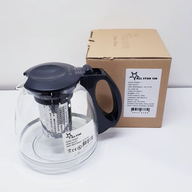 قوری پیرکس چای ساز کنارهمی 1300 سی سی دارای فیلتر استیل مناسب چایساز درجه 1 مدل آل استار 120