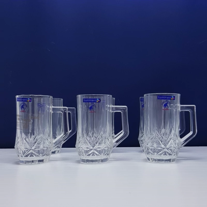 استکان لومینارک مدل برایتون حک شده اصلی دسته دار بسته 6 عددی ساخت امارات مدل گلد فرنس F2565E LUMINARC BRIGHTON