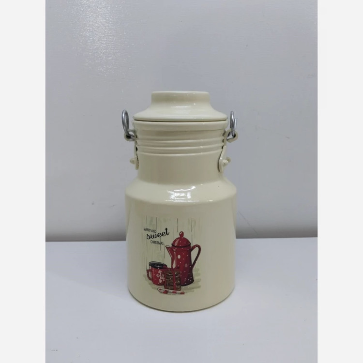 بانکه دبه روغن سطل شیر روحی 0.5 لیتری - بانکه - ظرف روغن برند یکتا باش رنگ کوره و دسته چوبی مدل A005