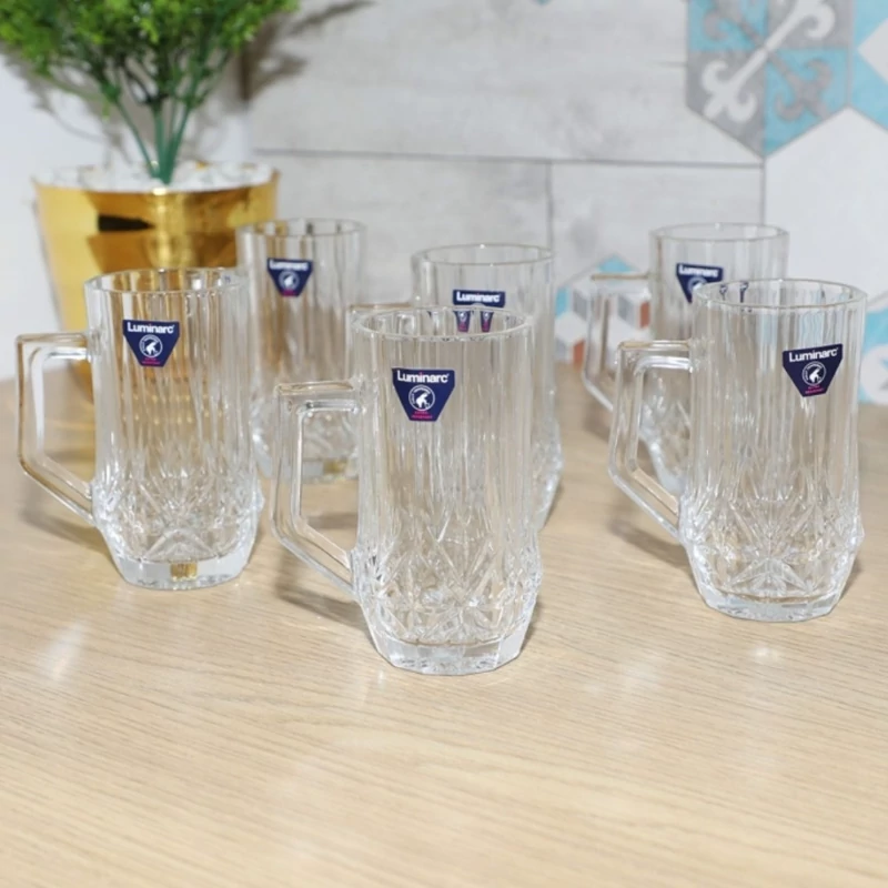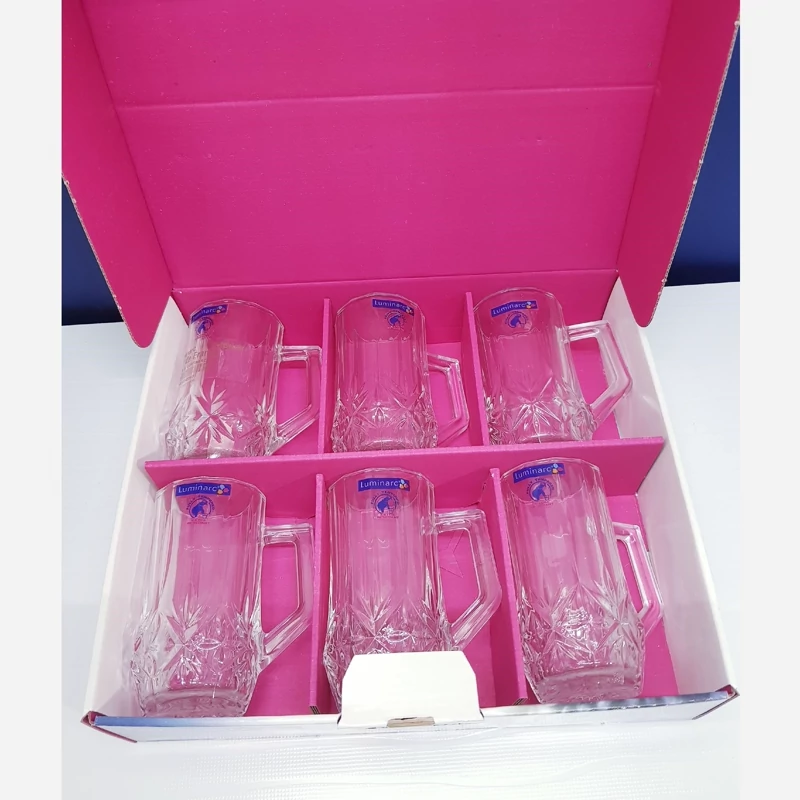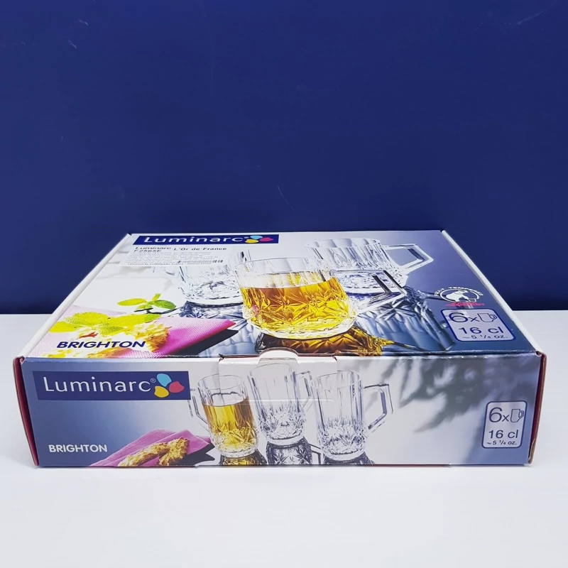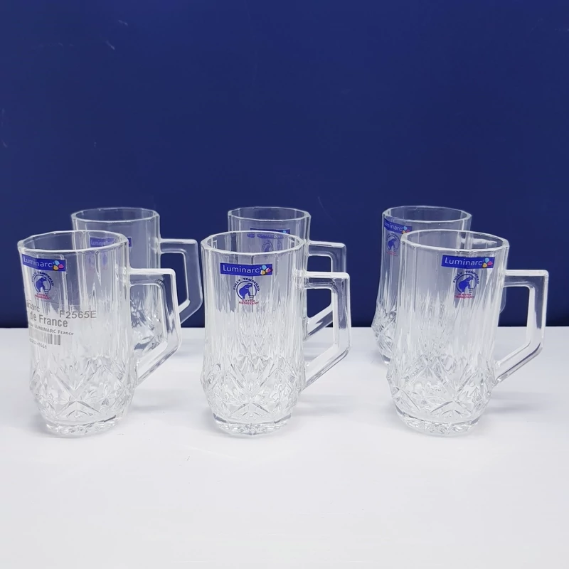استکان لومینارک برایتون حک شده اصلی دسته دار بسته 6 عددی ساخت امارات مدل گلد فرنس F2565E LUMINARC BRIGHTON