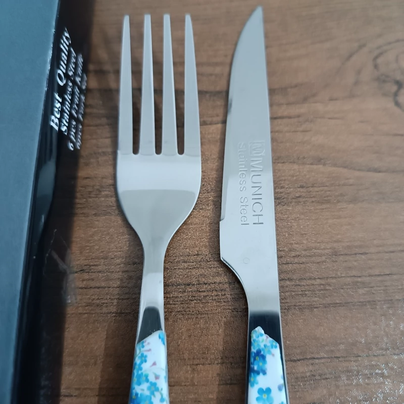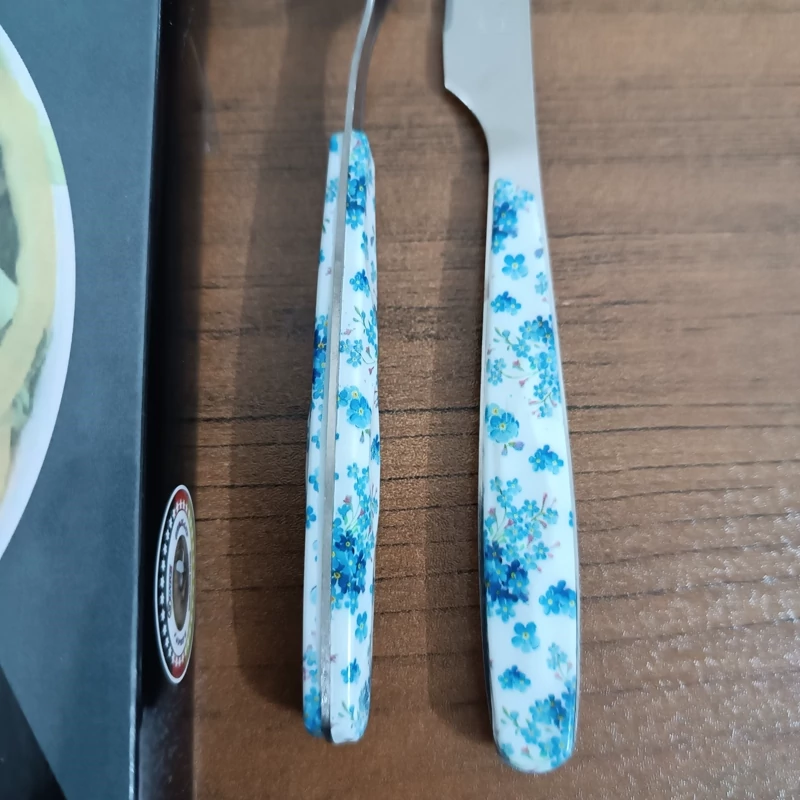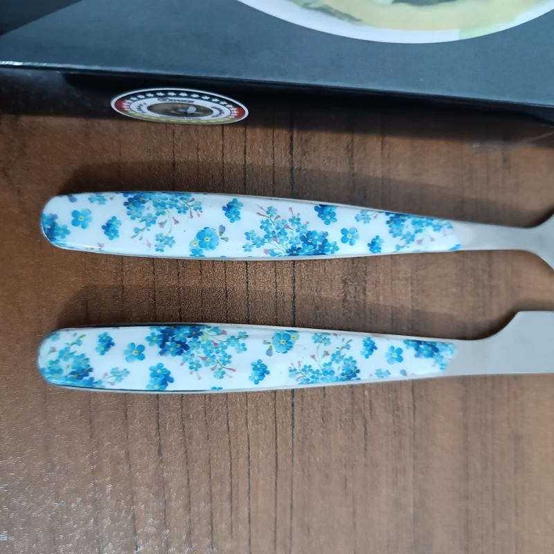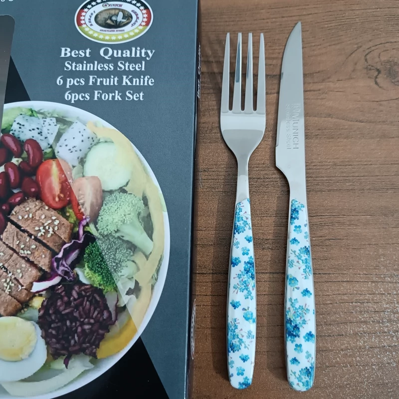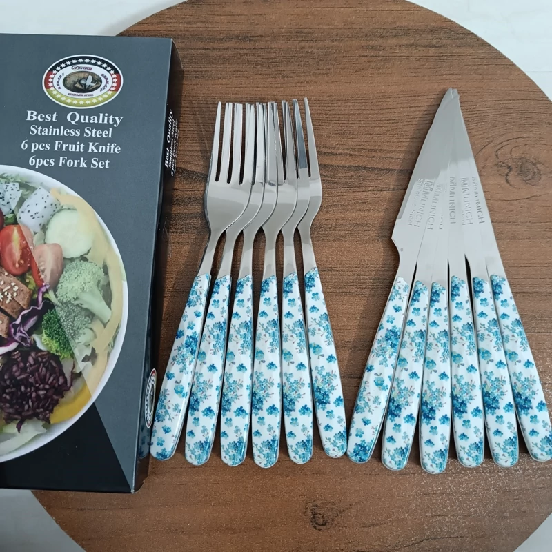 کارد و چنگال میوه خوری 12 عددی طرح سرامیکی طرح گل آبی ـ کارد و چنگال ـ چاقو و چنگال