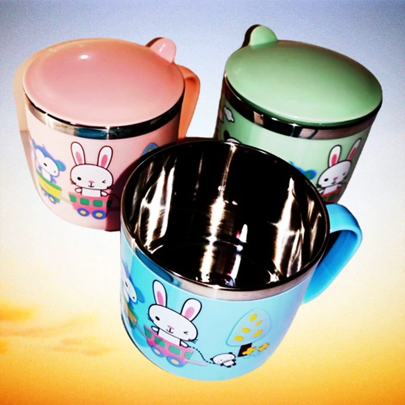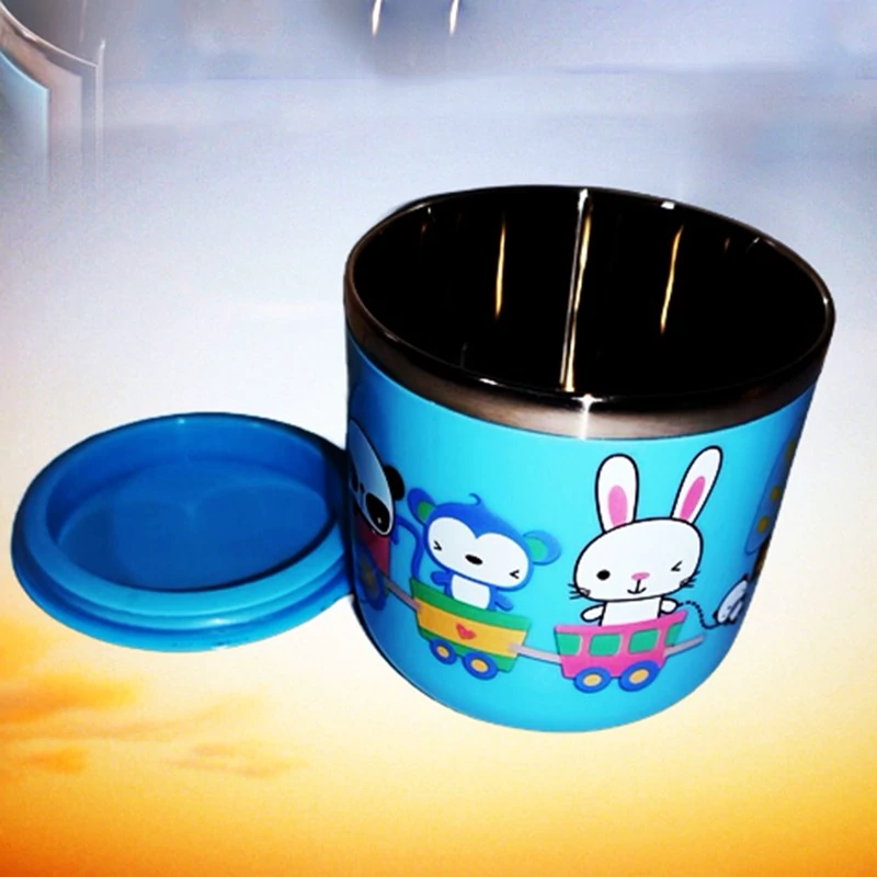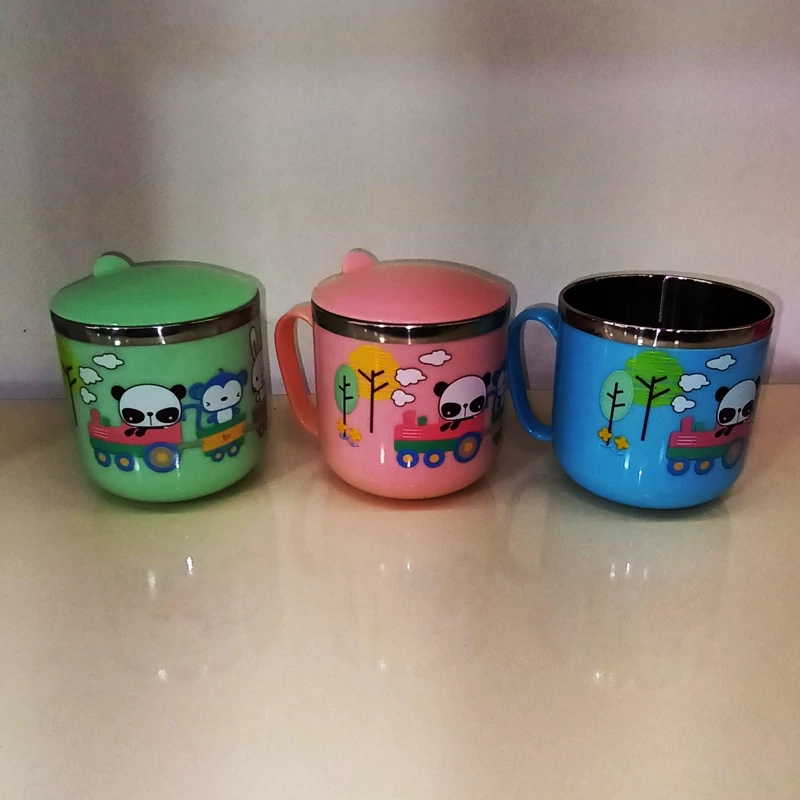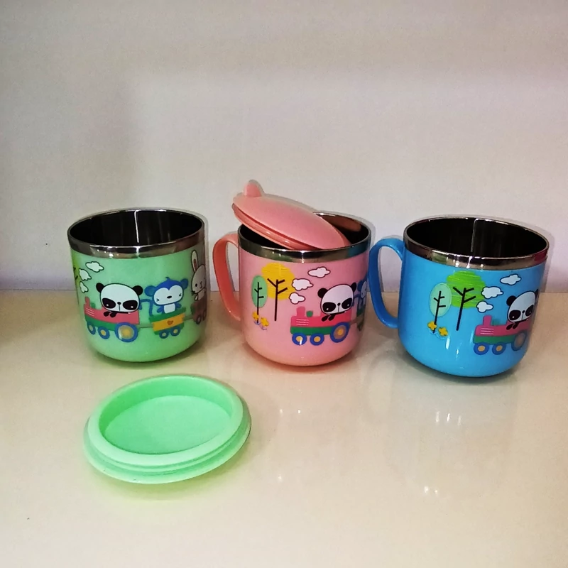 لیوان دو جداره طرح دار درب دار لایه داخل استیل لایه خارجی پلاستیک پلی پرو پیلن