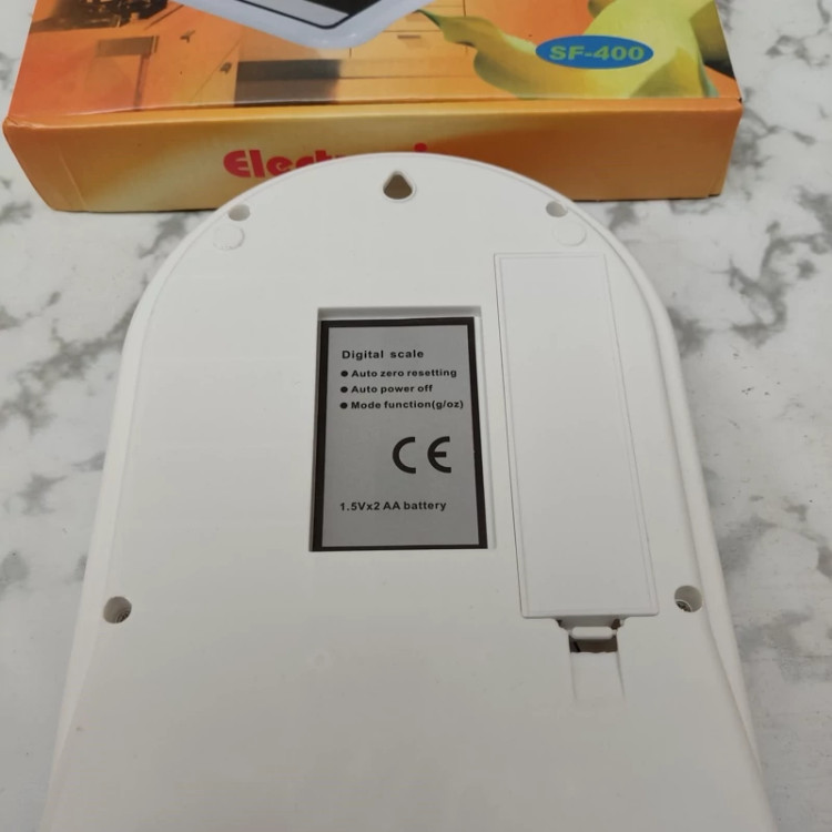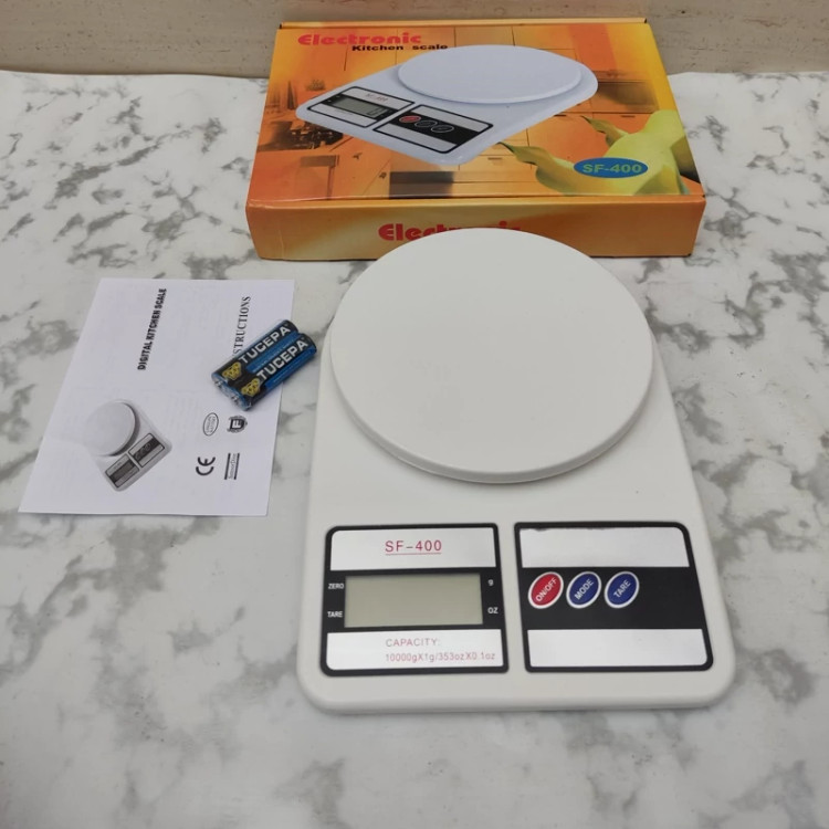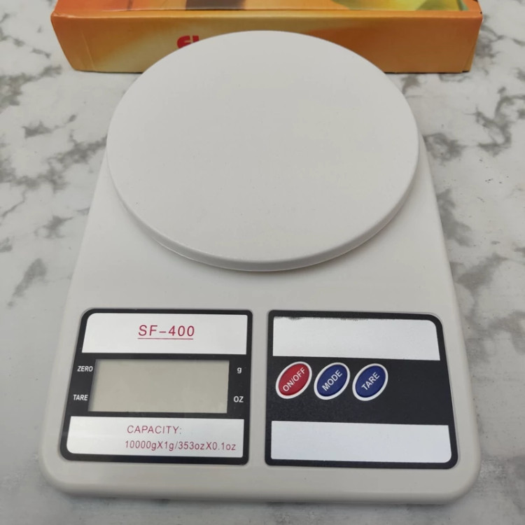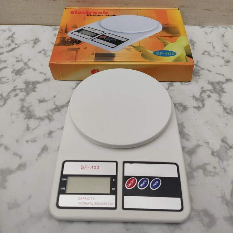 ترازو آشپزخانه دیجیتالی الکترونیک مدل SF-400 ظرفیت اندازه گیری تا 10 کیلوگرم را دارد و با توجه به وجود سنسورهای دقیق برای اندازهگیری، میتوان از آن برای اندازهگیری وزن موادغذایی مختلف استفاده نمود. این محصول به رنگ سفید و سفید صدفی به بازار عرضه شده است. از دیگر ویژگیهای آن میتوان به دقت اندازه گیری 1 گرم آن اشاره نمود و این به معنای اطمینان از کارایی محصول است. بر روی دستگاه یک نمایشگر برای نشان دادن وزن و سه دکمه قرار داده شده است. از قابلیتهای این ترازو، امکان تبدیل وزن به اونس و گرم است. به عبارت دیگر شما میتوانید وزن را بر اساس اونس و گرم بر روی ترازو ببینید و تبدیل آن با استفاده از دکمه MODE انجام میپذیرد. دکمه TARE نیز برای صفر کردن ترازو است. همچنین قابلیت خاموش شدن خودکار را هم دارد و در صورتی که مدت کوتاهی بدون استفاده باشد، به صورت اتوماتیک خاموش میشود تا میزان انرژی کمتری را مصرف کند و عمر طولانی تر را هم داشته باشد.