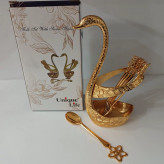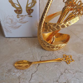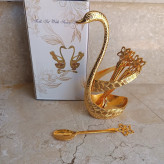 جا قاشقی سلطنتی طلایی رنگ طرح قو همراه 6 عدد قاشق چایخوری