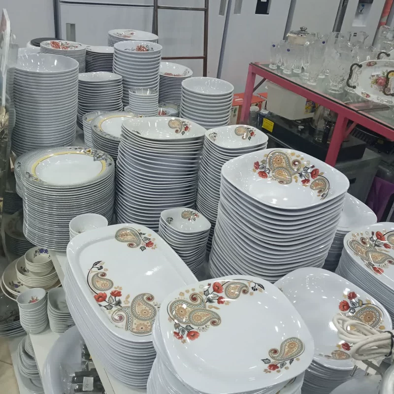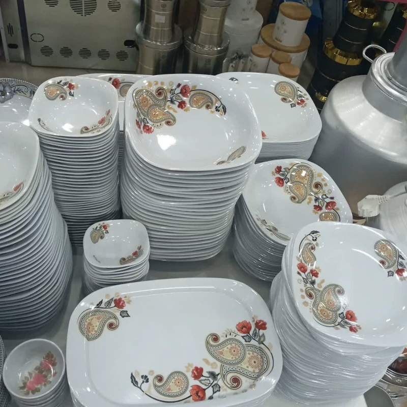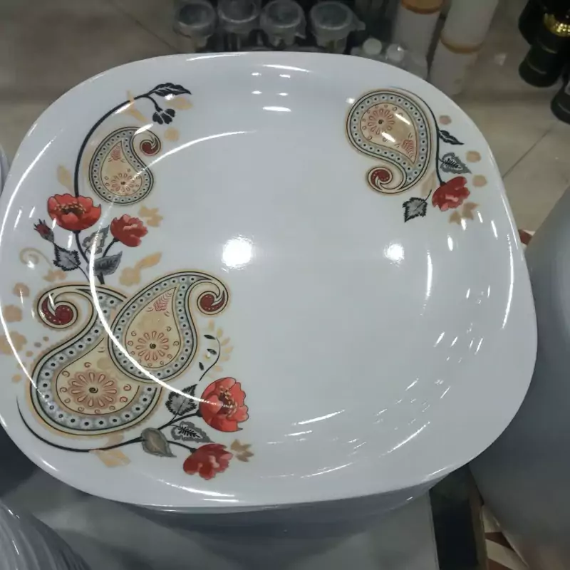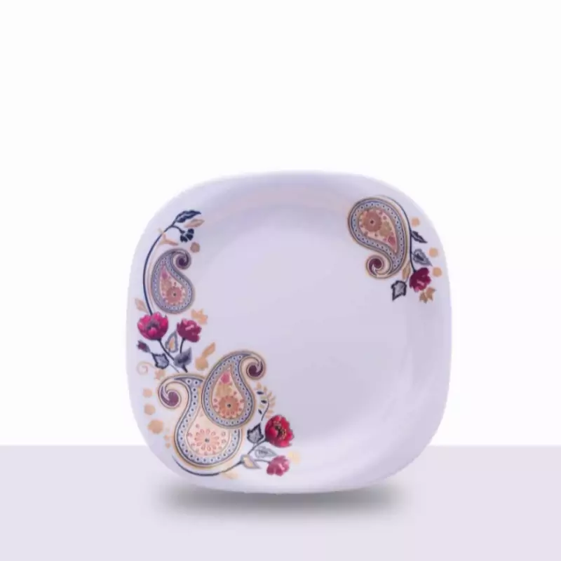 بشقاب برنج خوری ملامین مربع طرح ترمه مارک اصلی شیرکوه یزد دارای استاندارد جنس درجه یک تعداد 6 عددی سایز 25