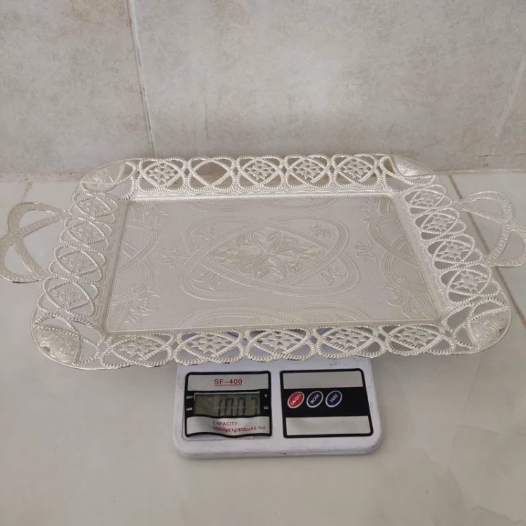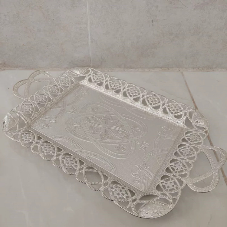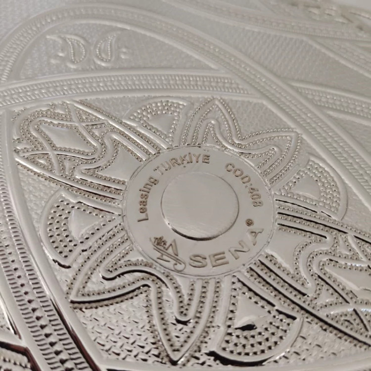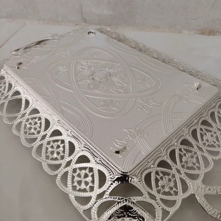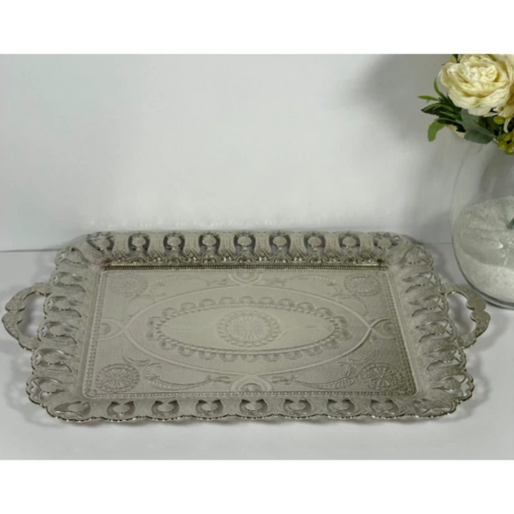 سینی سیلور ترکی اصل رنگ نقره ای وزن سنگین ضد زنگ.سینی پذیرایی ASENA .سینی اصل ترکیه.برند آسنا.38در28سانت رنگ ثابت