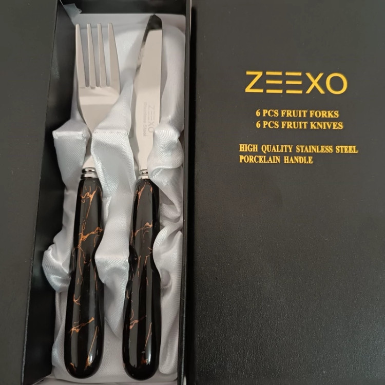 کارد و چنگال سرامیکی ماربل مشکی طلایی بسته 12 عددی - چاقو و چنگال