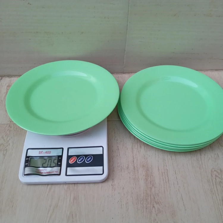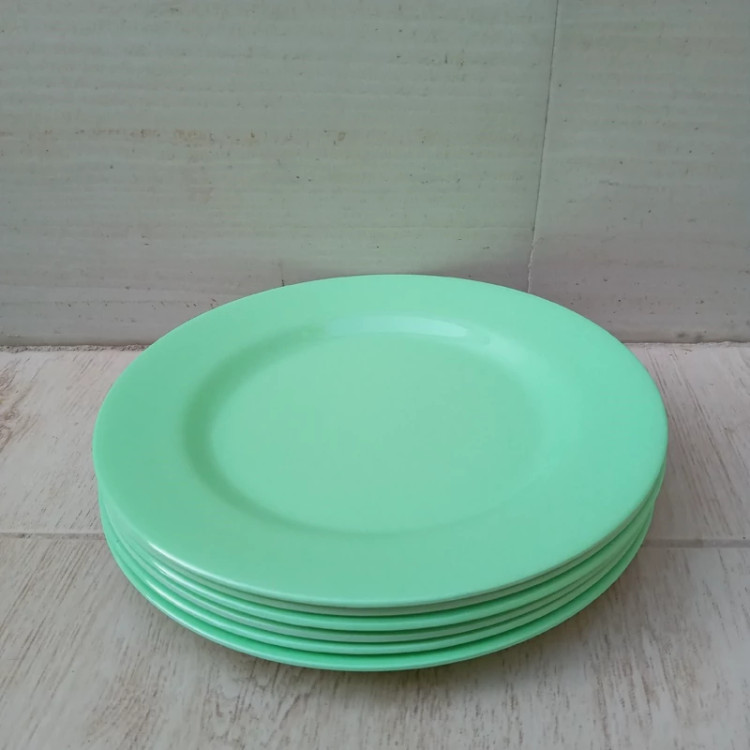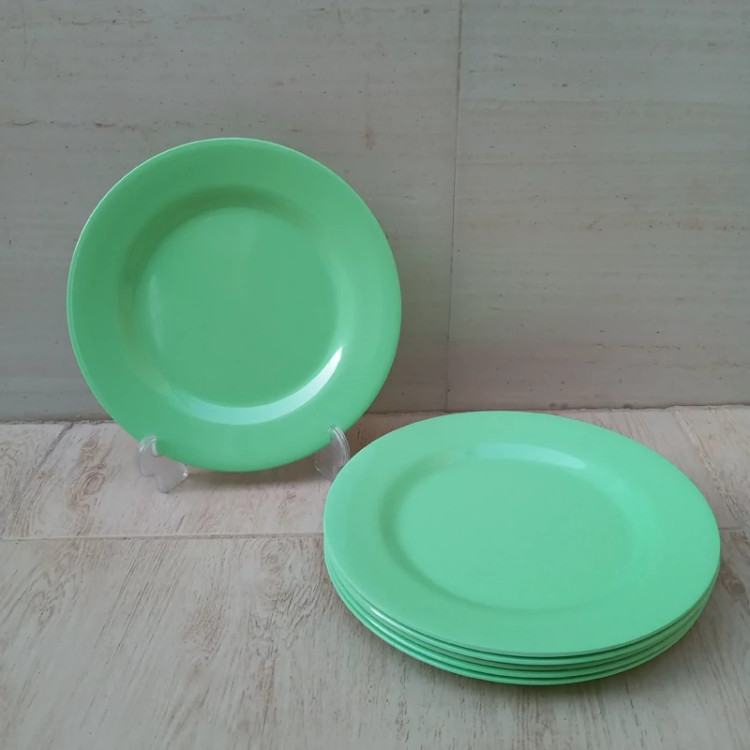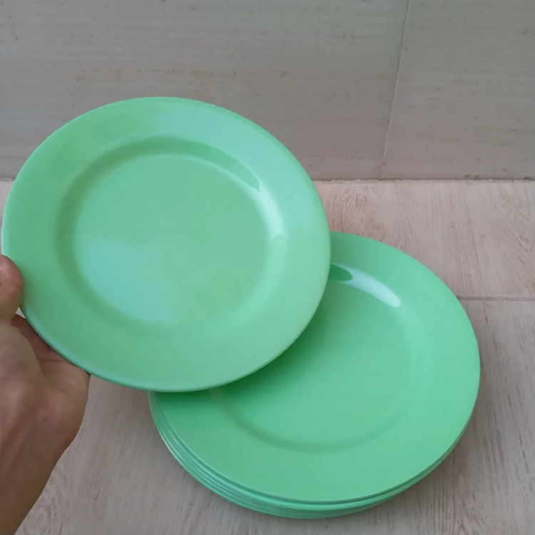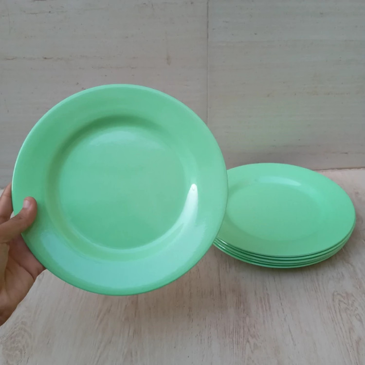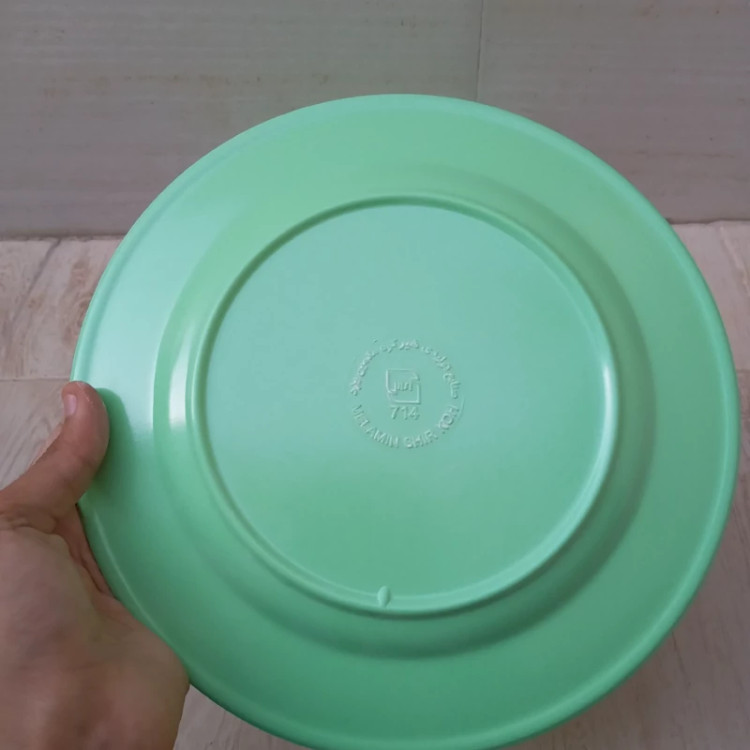بشقاب برنج خوری ملامین رنگی سبز مارک صنایع تولیدی شیرکوه ملامین یزد دارای استاندارد مواد درجه یک تعداد شش عددی سایز 23