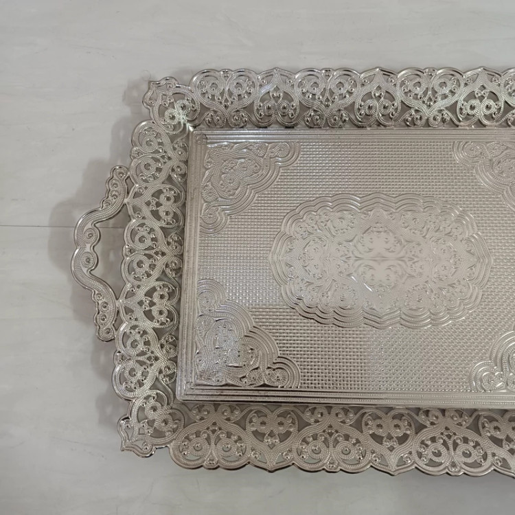 سینی سیلور بزرگ پذیرایی دسته دار ،سینی چای خوری،سینی چایخوری
