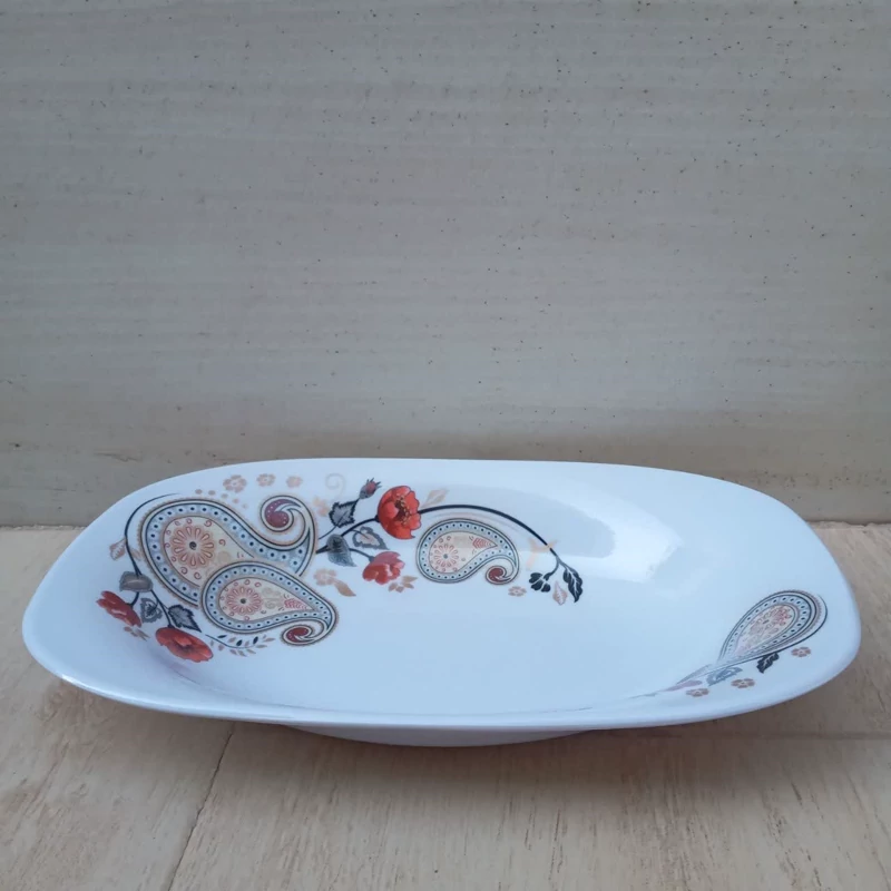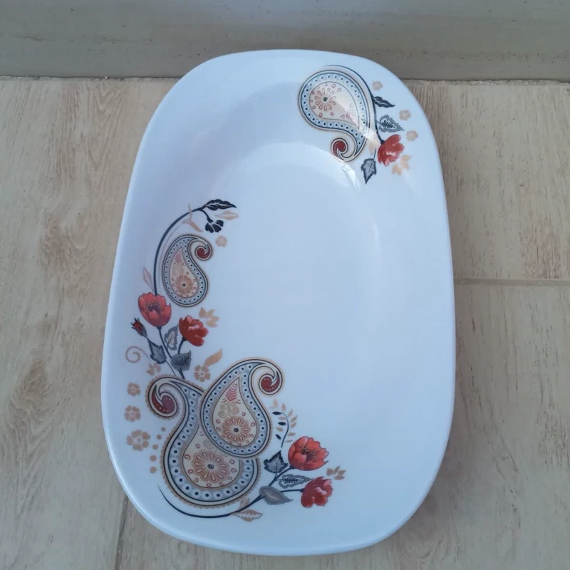 کاسه مرغ خوری ملامین مربع طرح ترمه مارک اصلی شیرکوه یزد دارای استاندارد جنس درجه یک تعداد یک عددی سایز 20در 31.5در 4.5