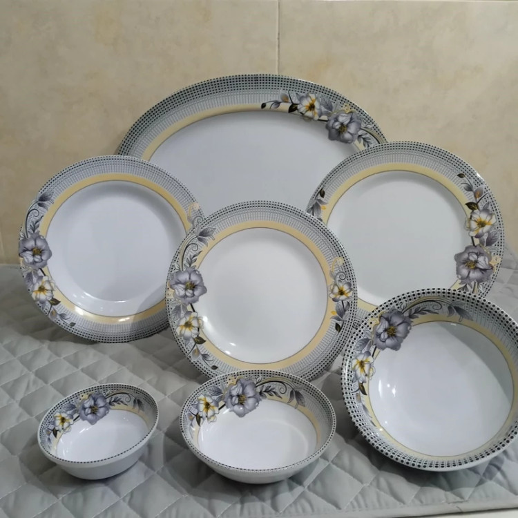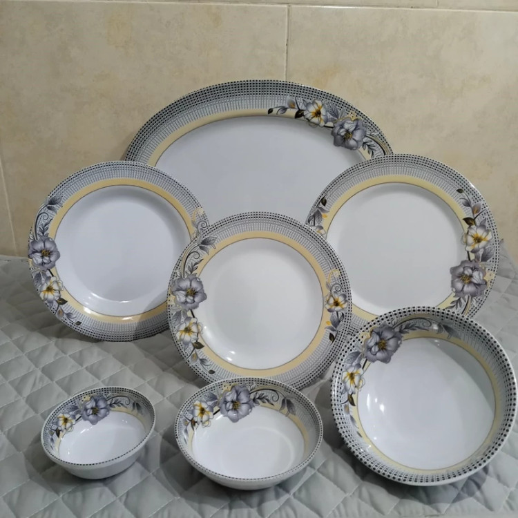 سرویس 37پارچه ملامین گرد صنایع تولیدی شیرکوه ملامین یزد دارای استاندارد مواد درجه یک رنگ طوسی مارک اصلی ملامین یزد