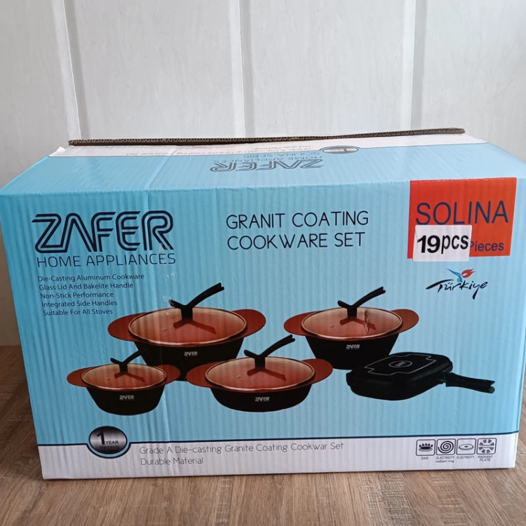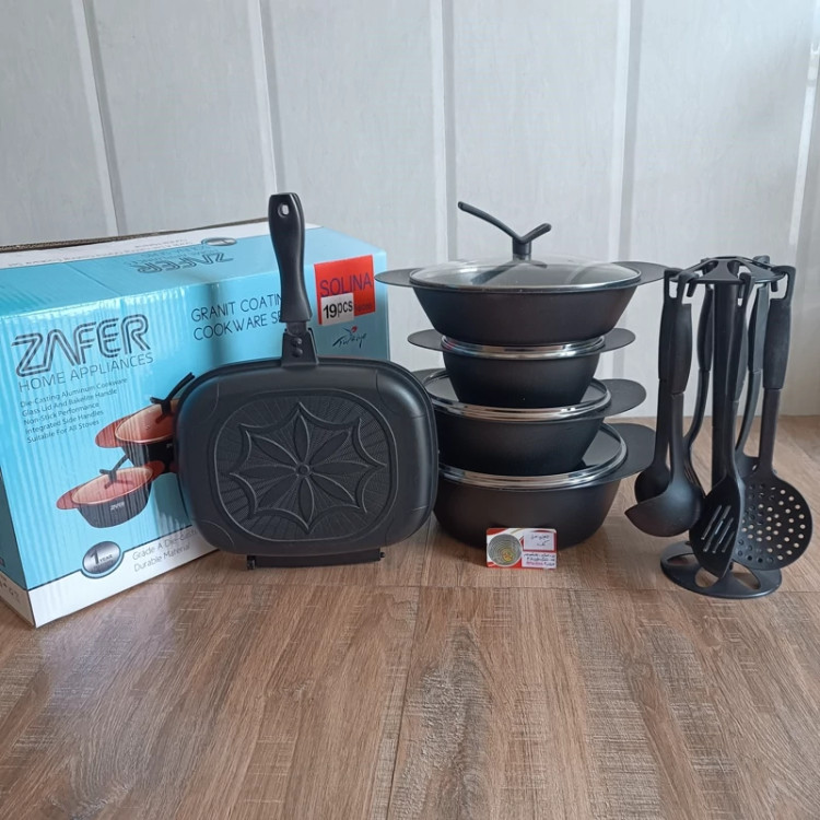 سرویس قابلمه گرانیتی دسته سرخود 19 پارچه ZAFER ( سرویس قابلمه همراه ماهیتابه رژیمی)