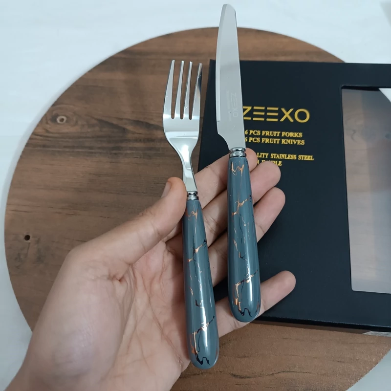 ست کارد و چنگال میوه خوری دسته سرامیکی