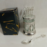 قاشق چایخوری با پایه طرح لیوانی استند دار جاقاشقی قلم کاری شده و چای خوری نقره ای