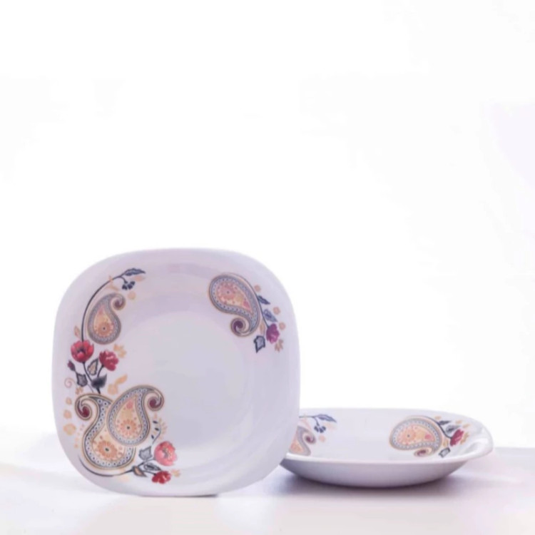 بشقاب خورشت خوری( گود)ملامین مربع طرح ترمه مارک اصلی شیرکوه یزد دارای استاندارد جنس درجه یک تعداد 6 عددی