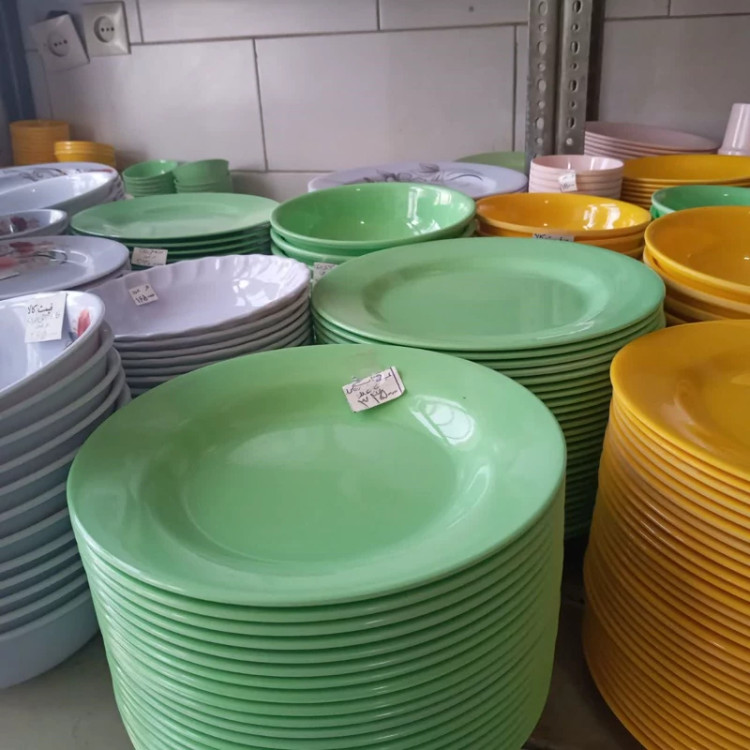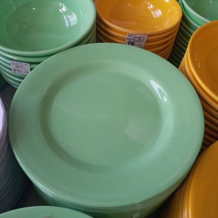 سرویس غذاخوری ملامین رنگی سبز 25 پارچه مارک (شیرکوه یزد) مارک اصلی تولید کارخانه یزد دارای استاندارد
