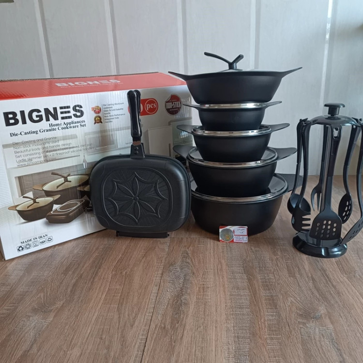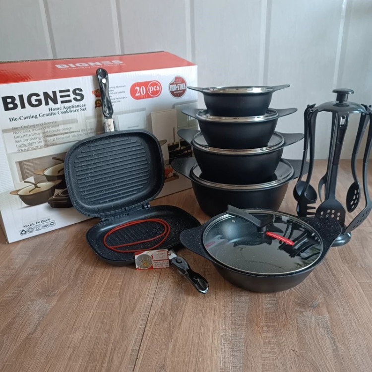 سرویس قابلمه چدن دسته سرخود 20 پارچه BIGNES( سرویس قابلمه همراه ماهیتابه رژیمی)