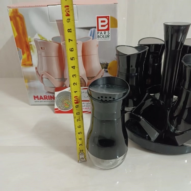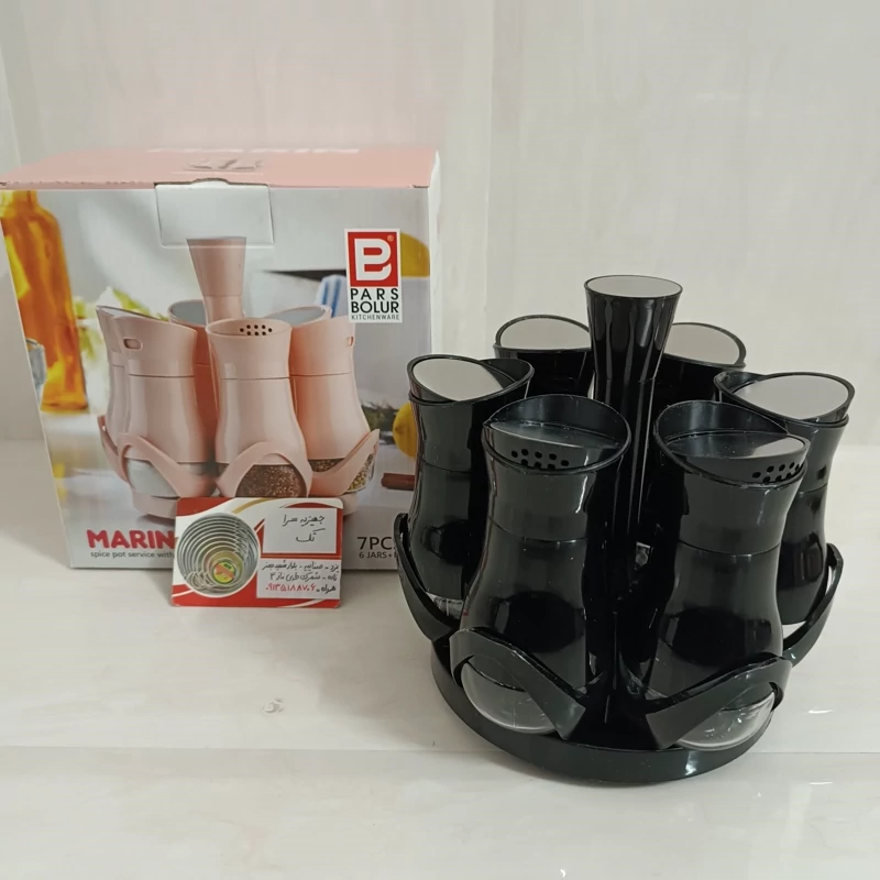 جا ادویه چرخشی 7 پارچه مارین همراه با استند مشکی ( ست جاادویه )