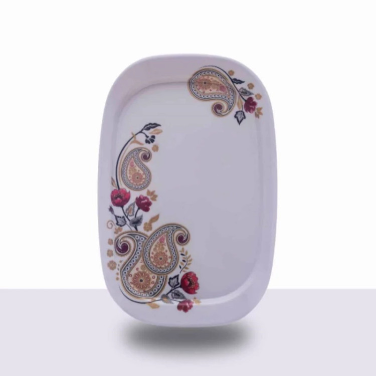 دیس کوچک ملامین مربع طرح ترمه مارک اصلی شیرکوه یزد دارای استاندارد جنس درجه یک تعداد یک عددی 21 در 32