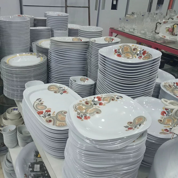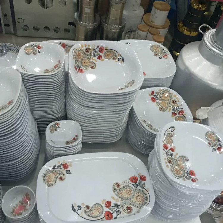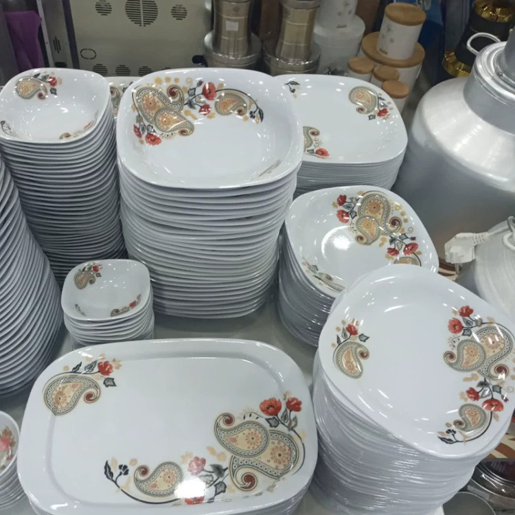 سرویس 37 پارچه ملامین مربع طرح ترمه مارک اصلی شیرکوه یزد دارای استاندارد جنس درجه یک 6 نفره مارک اصلی