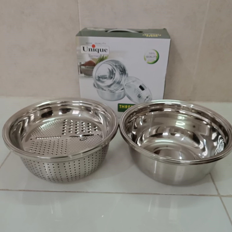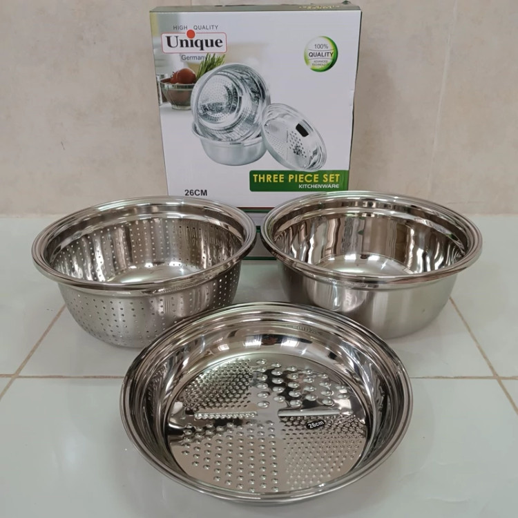 آبکش لگن رنده استیل 3تیکه یونیک