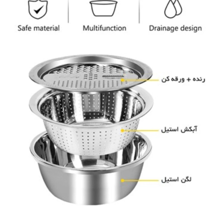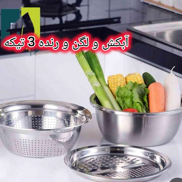 ست آبکش و لگن رنده دار ،یک ابزار کاملا حرفه ای که شامل 3 تکه آبکش،لگن و رنده می باشد.
